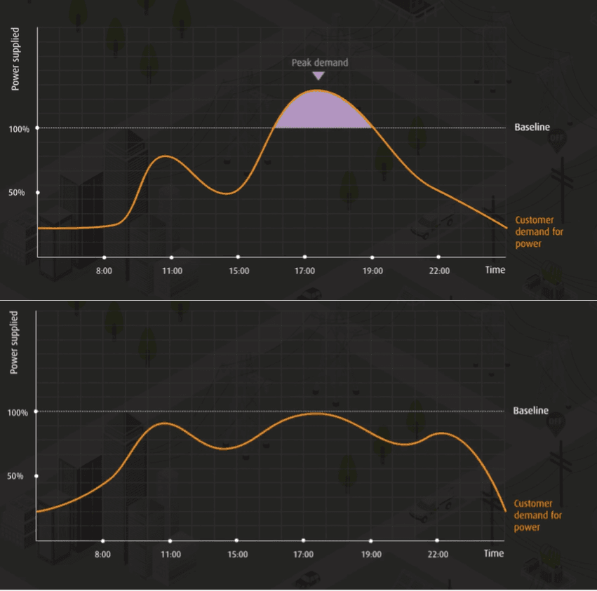 The load on the network varies throughout the day, depending on what equipment customers are using. Peak load typically occurs during the early evening in the winter months. Our assets have a fixed power rating and when this rating is exceeded, we need to consider replacing the equipment with a larger unit. Often the rating is only exceeded for a few hours on a few days of the year so it is inefficient to replace the asset when it is perfectly suitable for the other 99% of the time.