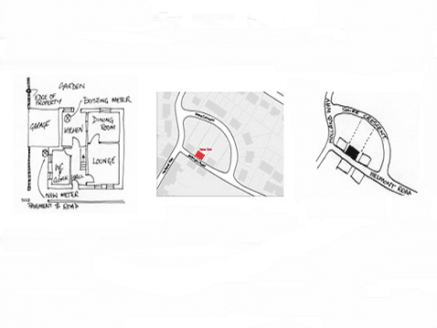 This helps us understand the layout of your property. You can hand draw this plan or send us architects plans if you have them. On this plan please show (if applicable) where you would like the electricity meter to be and where your existing electricity meter is (again if applicable).