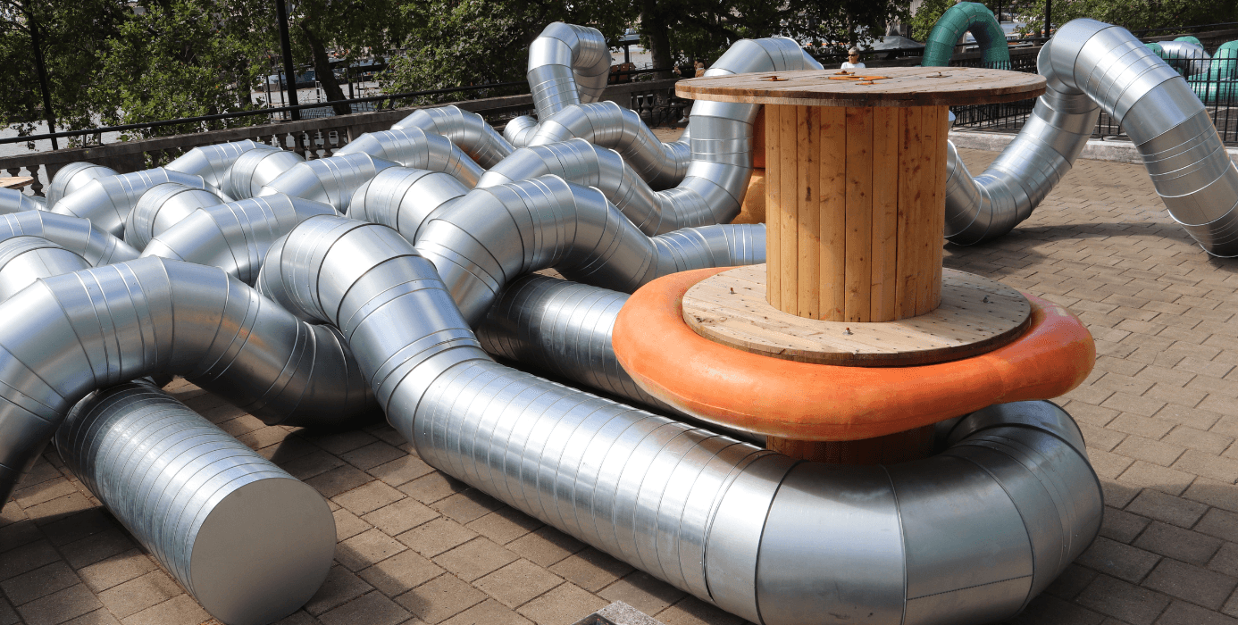 UK Power Networks supplied 25 cable drums for the project, worth nearly £4,000. Hendry weaved metal ducting over UK Power Networks’ cable drums, which are each 1 metre high, and casts of inflated boat fenders.