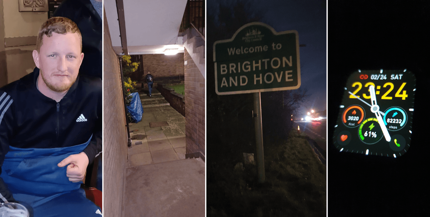 He started the mammoth challenge on February 24, setting off from Tower Bridge at 5:35am and covered over 80 kilometres in 18 hours – arriving in Brighton just before midnight.