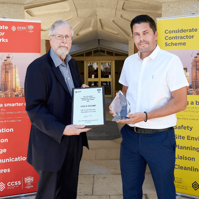 Delivering quick and efficient roadworks across London earned us two top industry awards from the City of London’s Considerate Contractor Streetworks Scheme; a Gold Award for overall roadworks performance, and London streetworks manager Colin Smith won the Outstanding Individual Achievement Award.
