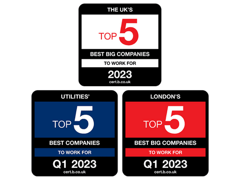 We achieved second overall in the Top 25 Best Big Companies to Work For List, number 1 in Utilities and number 3 in London.