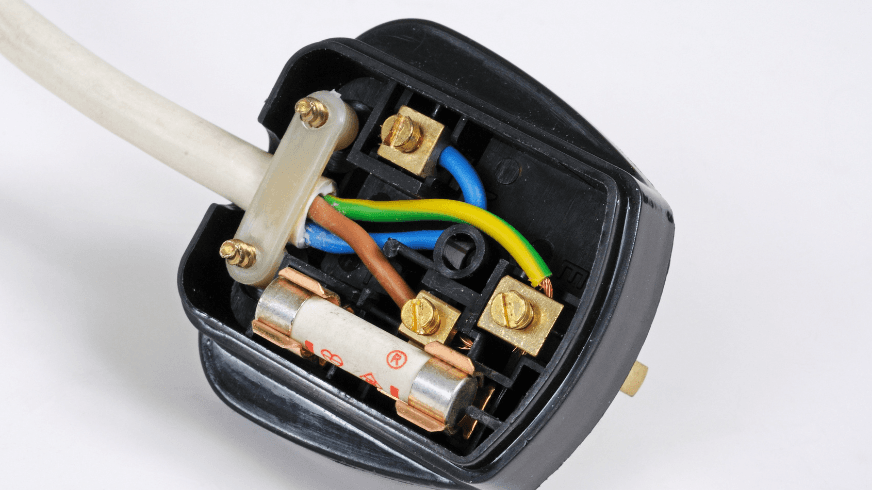 Three types of fuses are found in mains plugs: 3A, 5A and 13A. Each fuse contains a special piece of wire which melts once the current reaches the limit. When the wire melts it makes a gap in the circuit and so the current stops flowing.