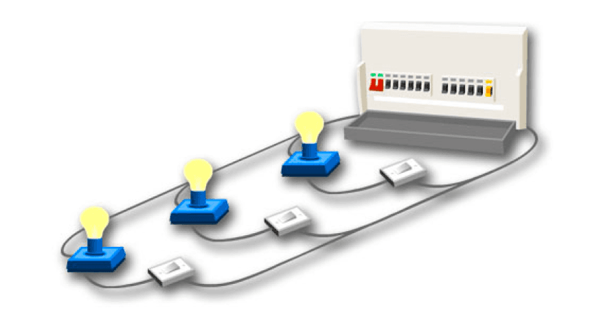 This is how our homes are wired; each room has it's own parallel lighting circuit so, if a light bulb blows, the other light bulbs stay lit.