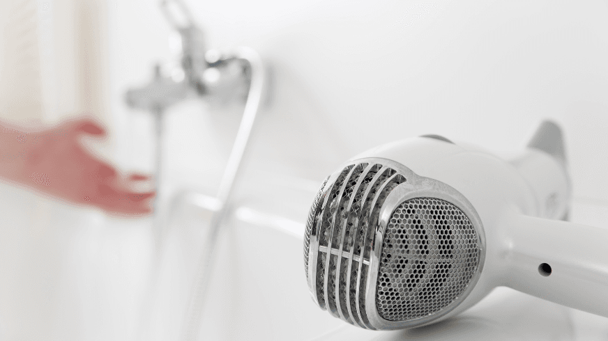 Never take electric appliances into the bathroom. Water conducts electricity - you could easily be electrocuted.