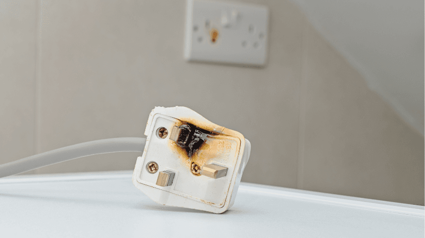 Never plug too many electrical appliances into one socket. The wires may overheat and catch fire.